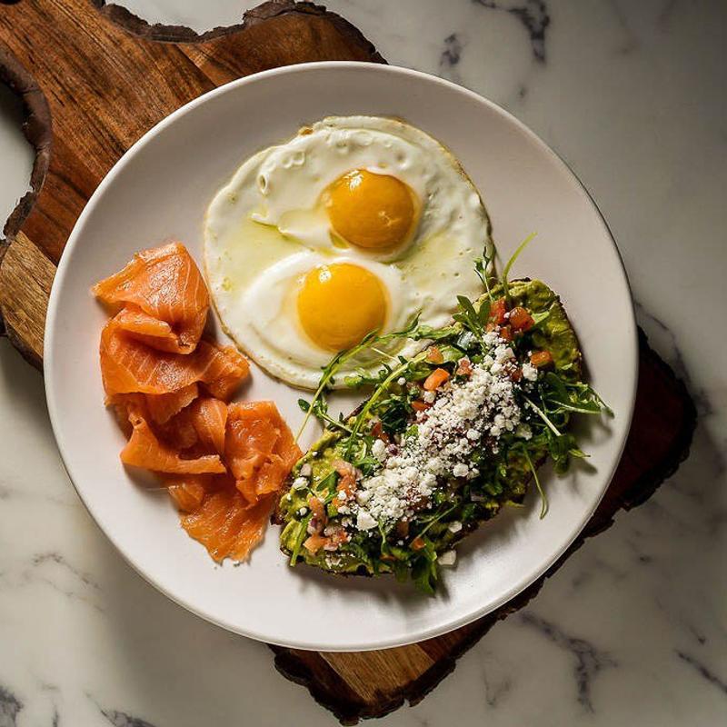 2 organic eggs your way, avocado smash, tomato salsa, arugula, goat cheese, homemade toast • Add: Bacon, Sausage, Smoked Salmon, Crab Meat for an additional price